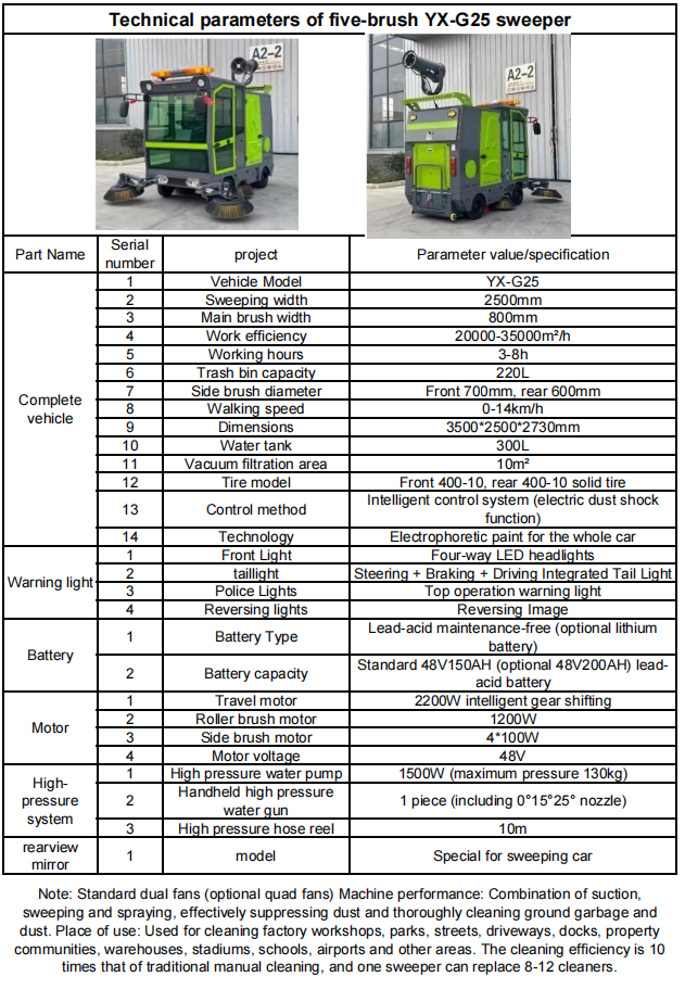 ประสิทธิภาพของเครื่องจักร: การผสมผสานระหว่างการดูด การกวาด และการฉีดพ่น ระงับฝุ่นได้อย่างมีประสิทธิภาพ และทำความสะอาดขยะและฝุ่นบนพื้นอย่างทั่วถึง