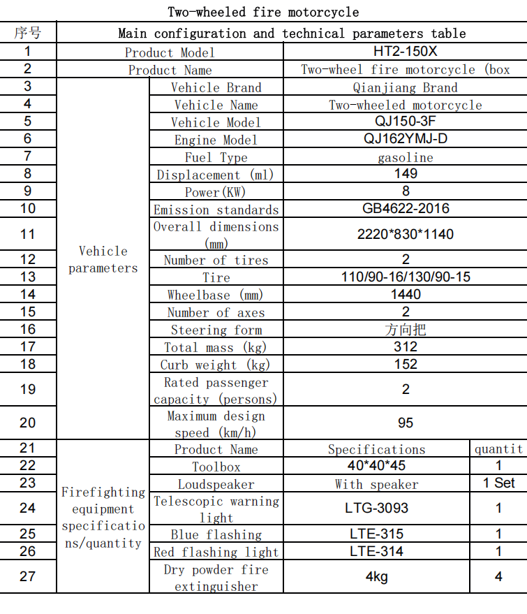 รถจักรยานยนต์ดับเพลิงสำหรับทุกพื้นที่มีสมรรถนะทางออฟโรดที่ยอดเยี่ยม สามารถดับเพลิงและกู้ภัยบนถนนบนภูเขาที่ขรุขระหรือถนนแคบได้อย่างรวดเร็วและยืดหยุ่น ในกรณีที่เกิดอันตรายจากไฟไหม้กะทันหันสามารถบรรทุกคนได้ 3 คนเพื่อจัดตั้งทีมต่อสู้เพื่อดับแหล่งกำเนิดไฟ